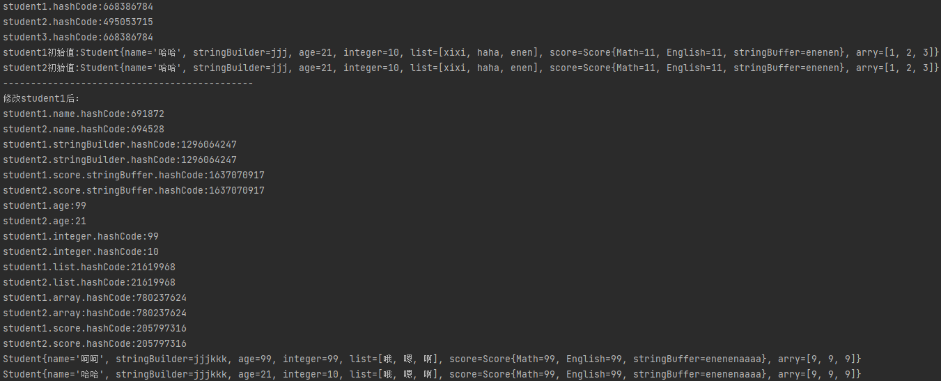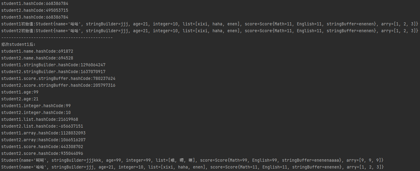- ==可变引用类型都是浅拷贝。要深拷贝这个类需要在clone()方法里对类的所有可变引用型的对员,都重新new出一个对象,把原来的值赋给新的对象,返回新对象。==
